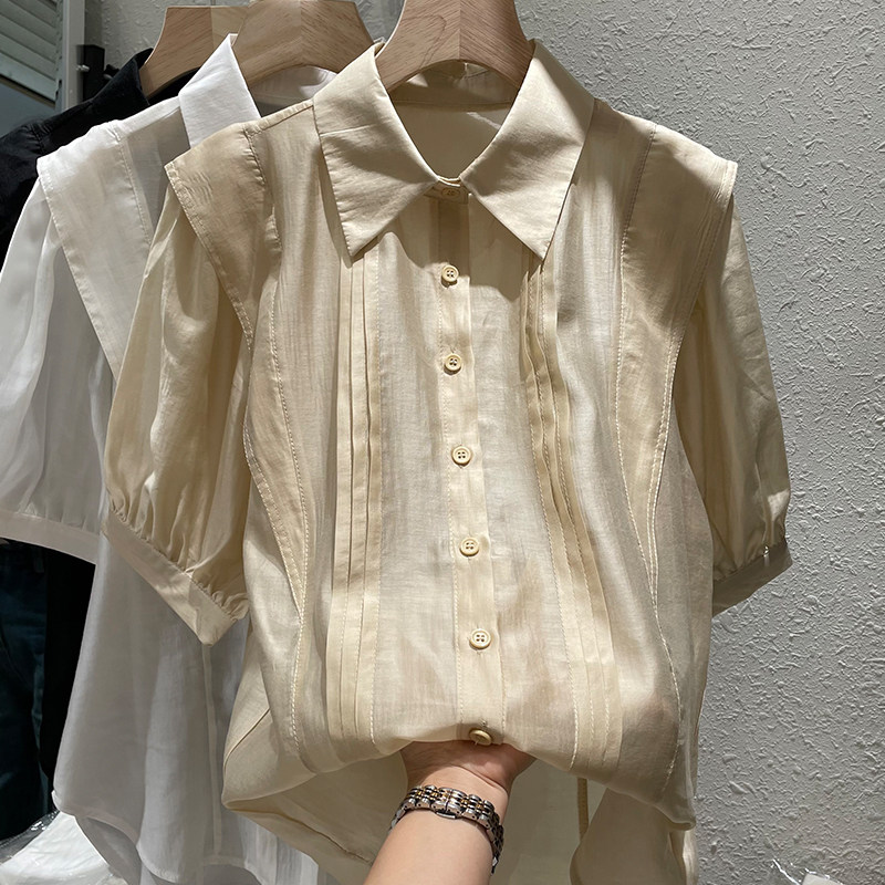 高端天丝雪纺上衣女欧货2022夏季新款小众设计感短袖polo领衬衣潮热门设计联盟服务商