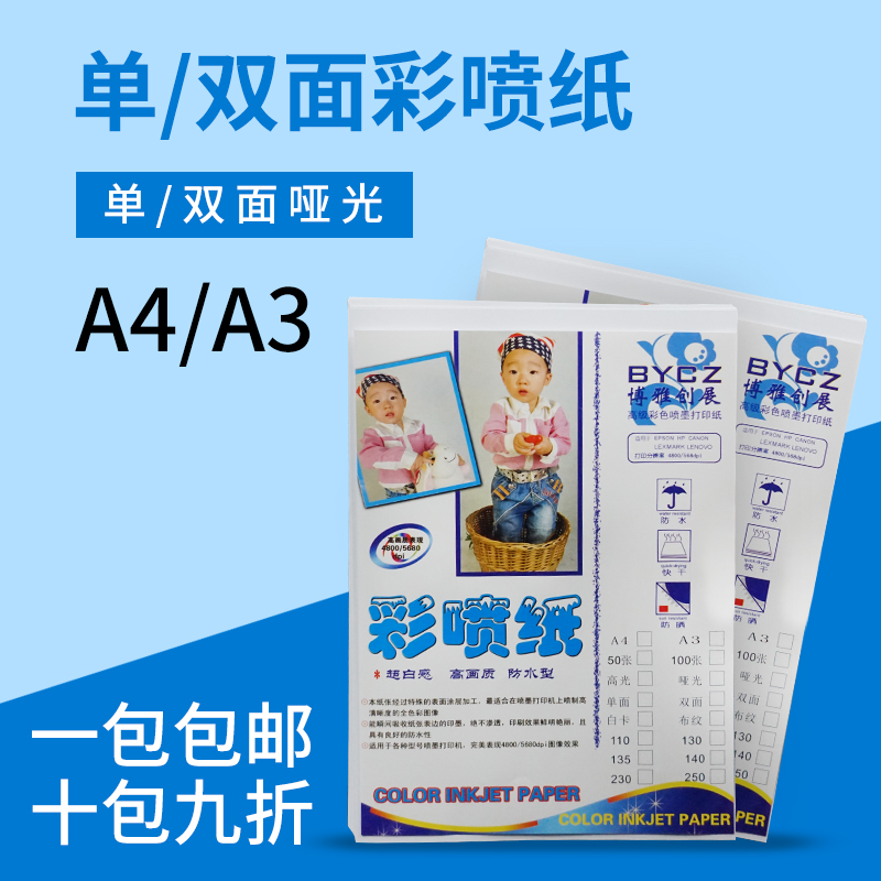 包邮140克彩喷纸a4双面哑光纸喷墨打印纸130单面彩喷纸简历宣传单热门设计联盟服务商