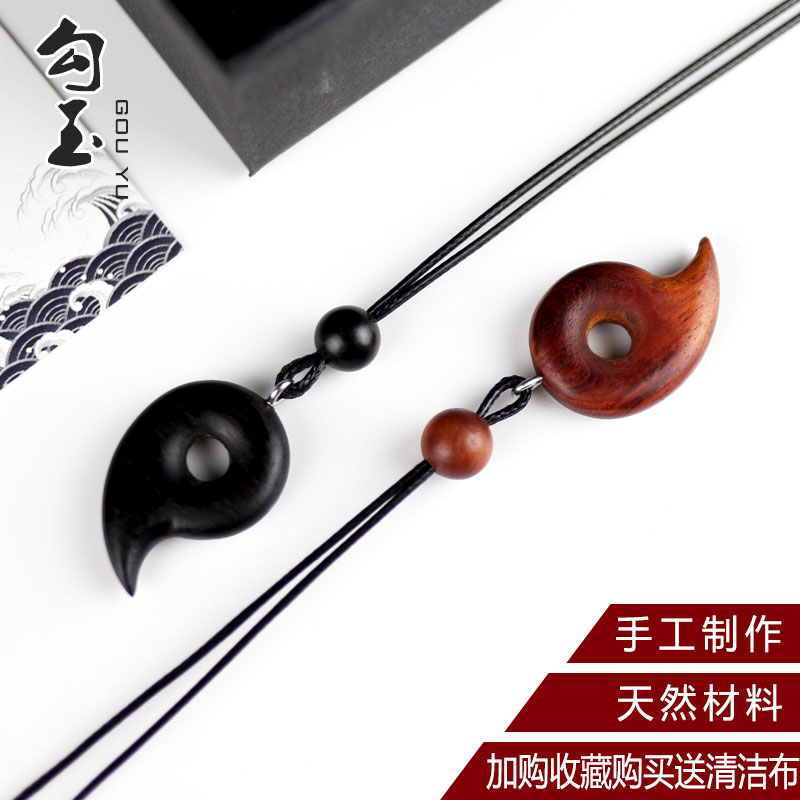 手工火影忍者宇智波六道带土鸣人勾玉硬檀木吊坠项链挂饰男女动漫热门设计联盟服务商