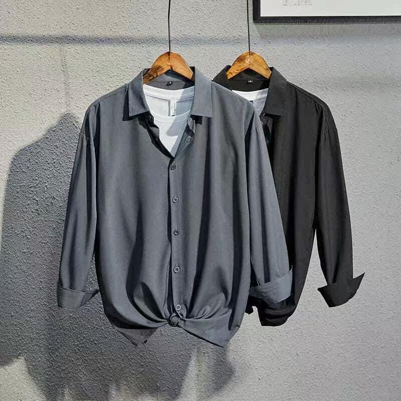 高级感衬衫男士夏季薄款韩版潮流潮牌设计感垂感休闲大码长袖衬衣热门设计联盟服务商