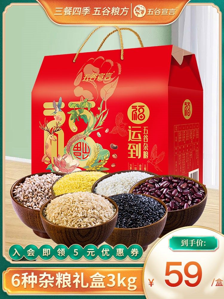 五谷宣言6种杂粮礼盒过年送礼品五谷杂粮包年货企业团购3kg热门设计联盟服务商