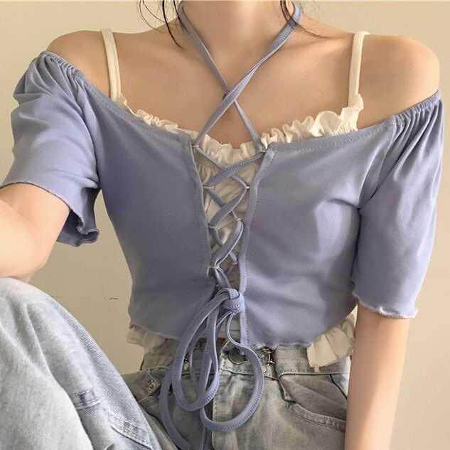 2022众短款露k脐套装时尚夏季锁骨设计短袖高腰ins潮脐高热门设计联盟服务商
