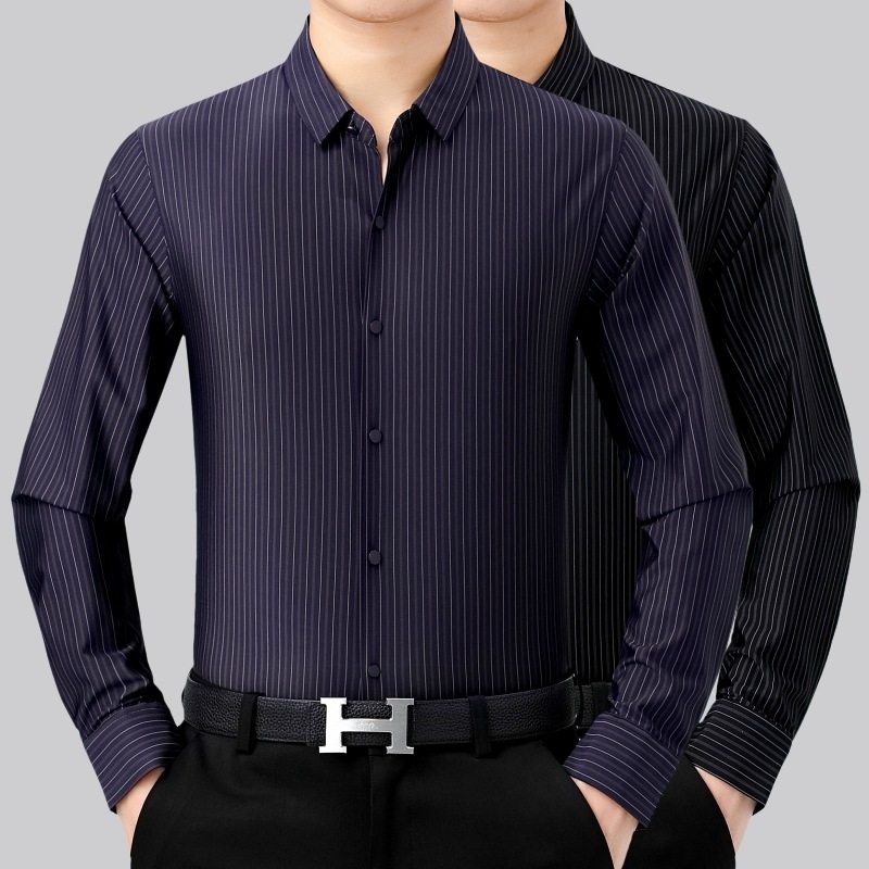 步森官方旗舰店正品新款方领修身型条纹长袖衬衫商务休闲 中年热门设计联盟服务商