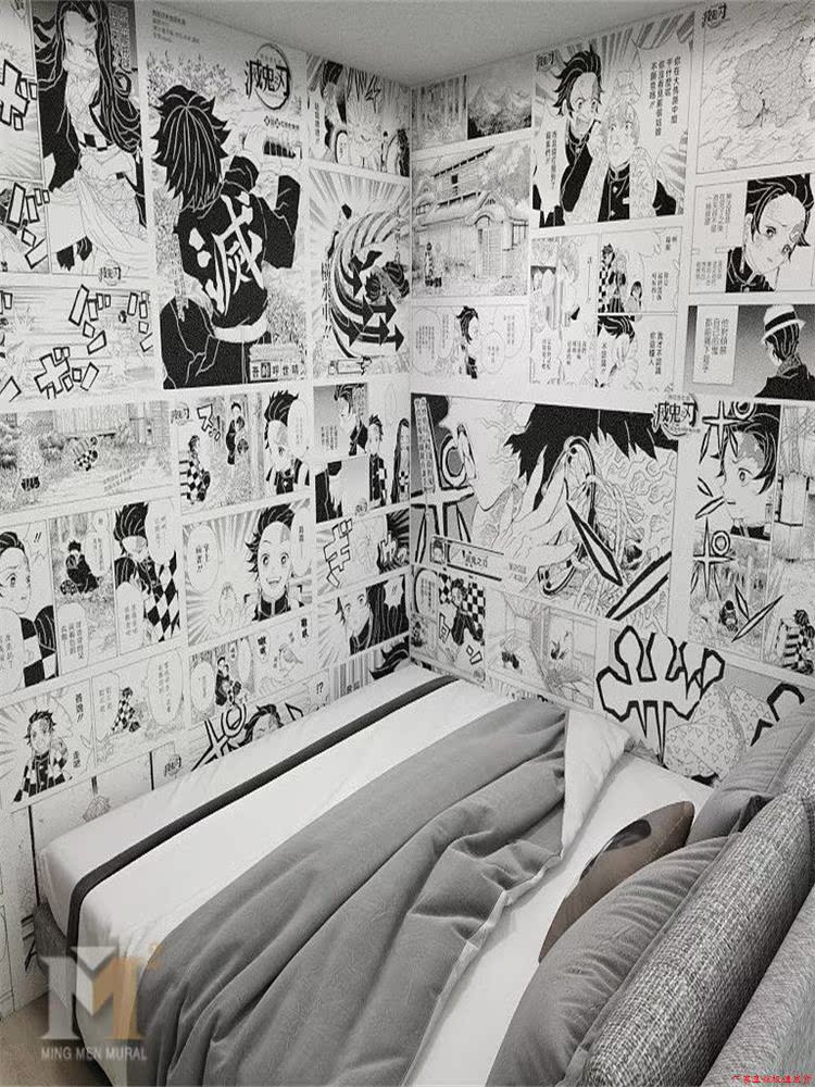 鬼灭之刃海报墙贴房间黑白宿舍海贼王卧室背景墙装饰墙贴动漫贴纸热门设计联盟服务商